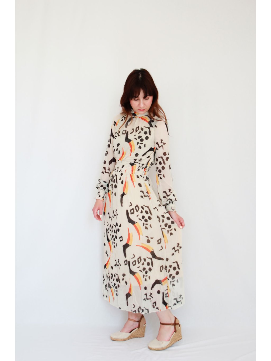 Když hledáš šaty, které zvládnou pracovní schůzku i víkendové kafíčko ve městě – šaty Marilou jsou jasnou volbou. Košilový střih, midi délka, dlouhé rukávy a živý abstraktní potisk v teplých tónech z nich dělají stylový kousek s osobností.