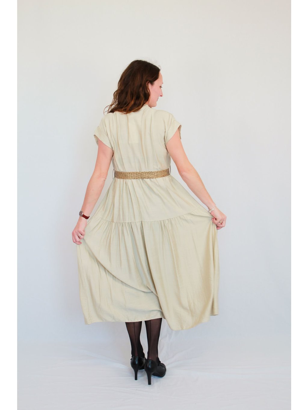 Světlý, jemný odstín a pohodlný košilový střih dělají z šatů Isadora ideální kousek pro každodenní eleganci. Díky přirozenému splynutí krémové barvy s přírodním páskem působí vzdušně, sofistikovaně a zároveň nenuceně.