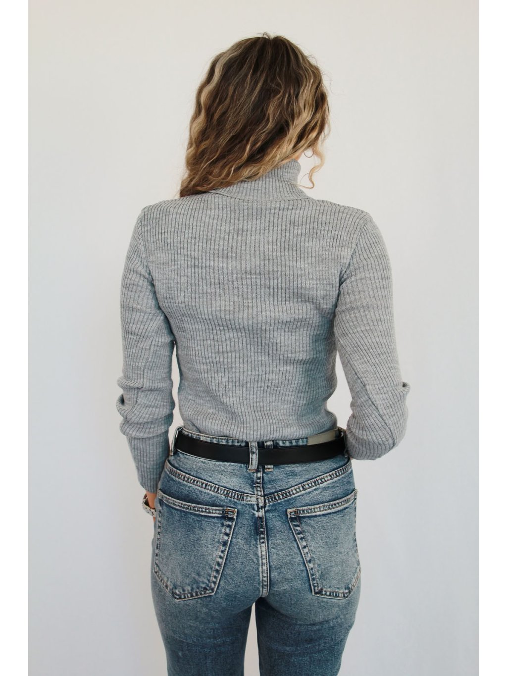Šedý dámský žebrovaný rolák s dlouhým rukávem | Melina