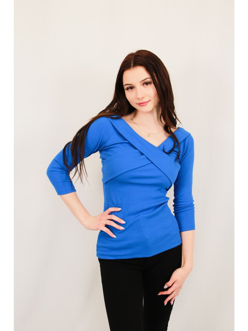 V jednoduchosti je krása. Top Lorena zaujme rafinovaným zavinovacím výstřihem, který zvýrazní dekolt a opticky prodlouží krk. Královsky modrá barva dodává celému modelu šmrnc a svěžest, zatímco 3/4 rukávy přináší praktické využití během celého roku.