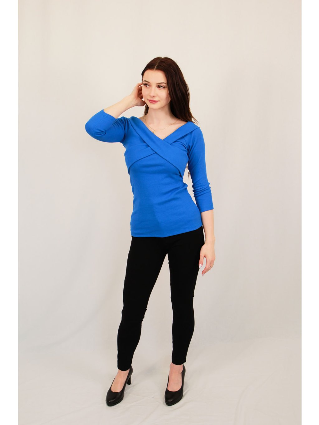 Modrý top s výstřihem a 3/4 rukávem | Lorena